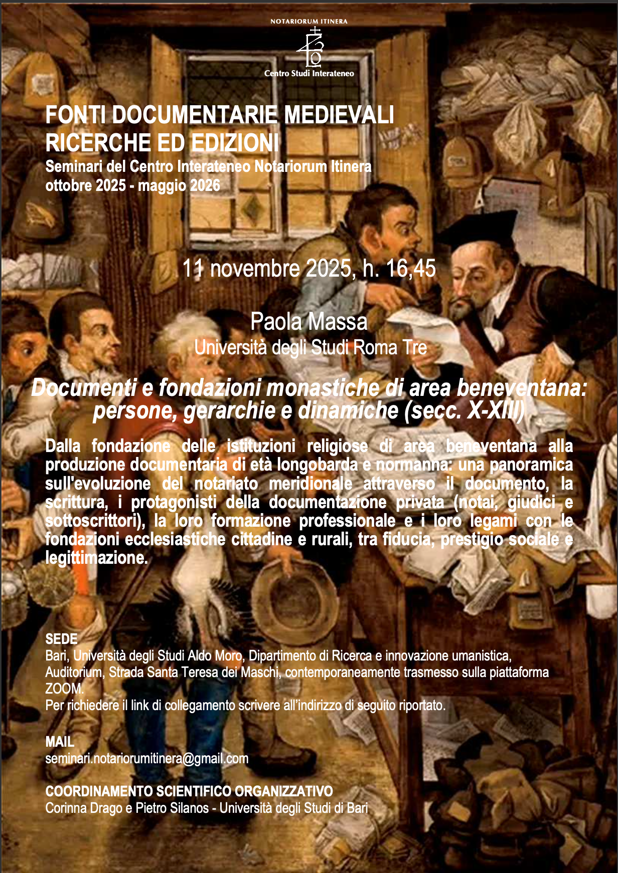 Dott.ssa Marta Mangini "Il progetto Notariorum itinera. Indagini in corso e prospettive di ricerca"